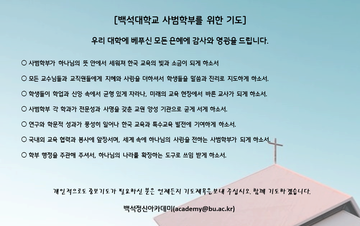 우리대학과 학부를 위한 기도입니다. 함께 기도해 주세요.