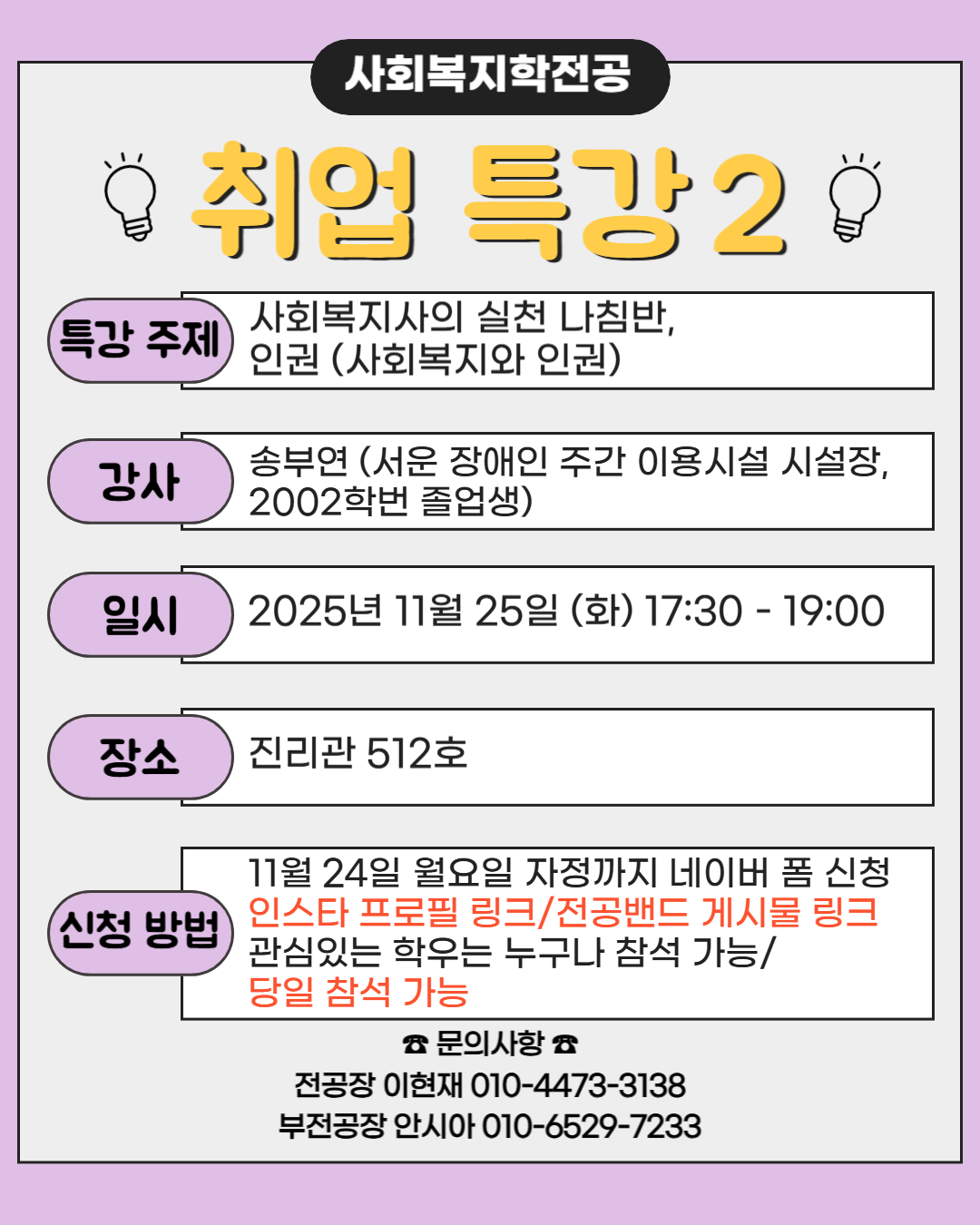 2026-1학기「사회복지현장실습」사전 수강신청 안내
