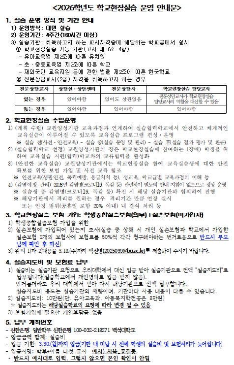 [교직] 2026학년도 학교현장실습 운영 안내