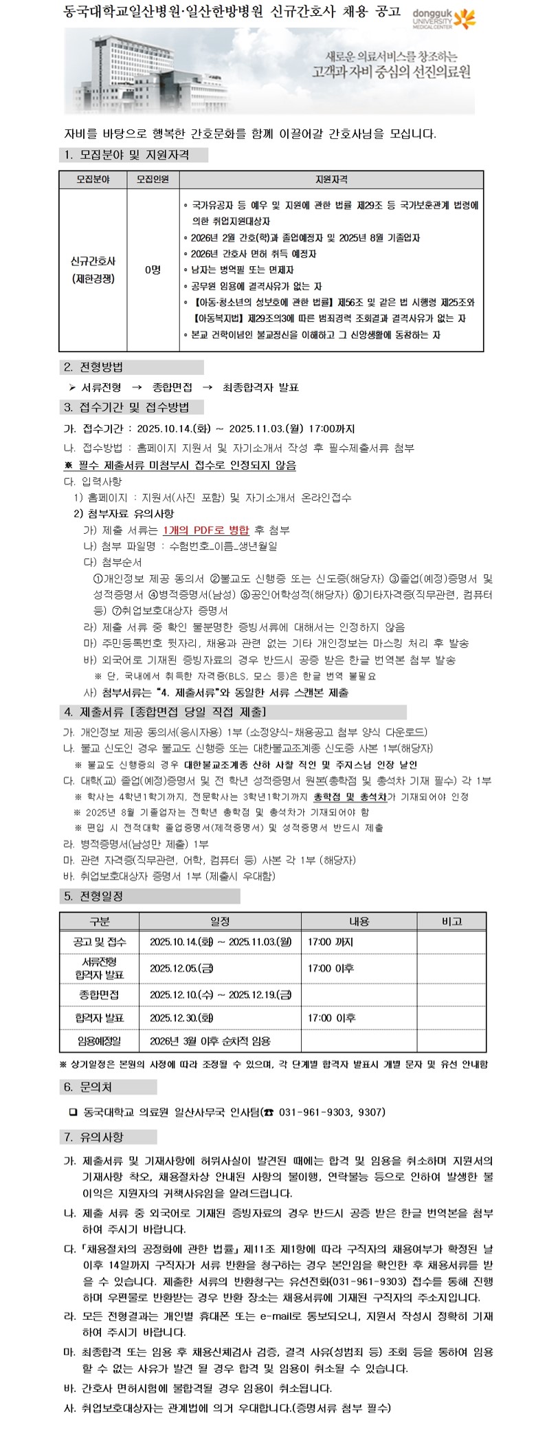 동국대학교일산병원 · 일산한방병원 신규간호사 채용 공고(일반전형)서가은 2025-10-28 15:01:57.0