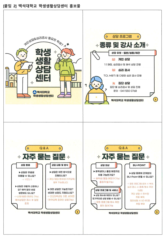 가. 운영내용 : 2025학년도 학생생활상담센터 개인상담, 심리검사, 집단상담