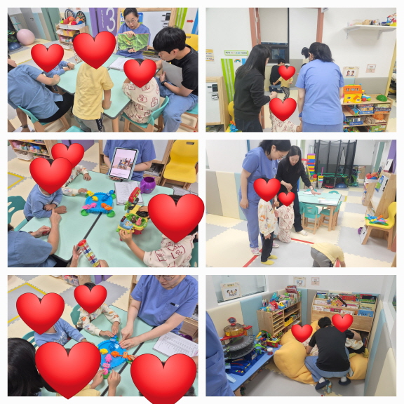 📍월요 사회성 프로그램은 아이들의 밝은 웃음으로 시작되었어요. 각자 좋아하는 놀잇감을 들고 모였는데, 그중 하나가 유난히 인기가 많았답니다. 친구가 가지고 온 장난감이 재미있어 보였는지 "나도 같이 해도 돼?" 물어보기도 했어요. 처음엔 혼자 가지고 놀던 친구도 “응, 같이 하자!” 하며 웃어주었고, 금세 두 명, 세 명, 네 명으로 늘어나 모두가 한 장난감으로 함께 사이좋게 놀고 있는 모습이 너무나 대견했어요. 서로 순서를 정하고 양보하며 놀다 보니, 장난감 하나로도 큰 즐거움을 나눌 수 있다는 걸 자연스럽게 배울 수 있었어요.