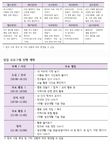 이 가능하도록 준비하고 있어요. 아이들이 스스로의 속도에 맞춰 성장할 수 있도록, 그리고 즐겁고 안전하게 참여할 수 있도록 세심하게 마련한 프로그램입니다.