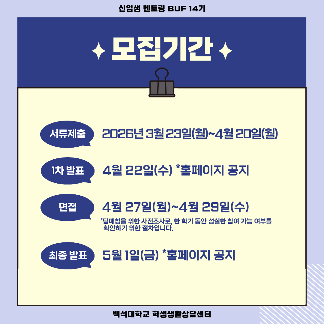 2026-1학기 신입생 멘토링(BUF) 14기 모집