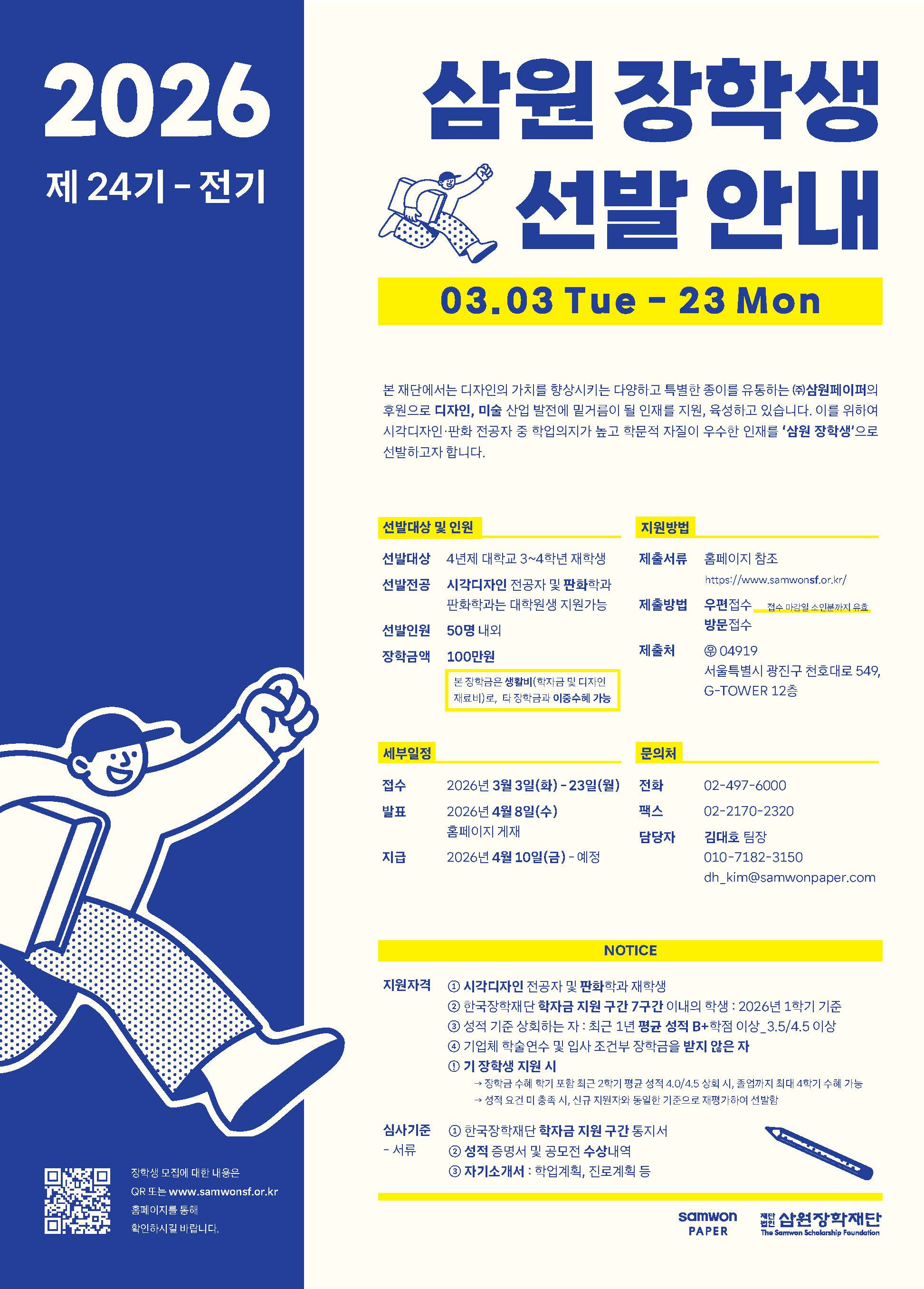[삼원장학재단] 제24기 전기(2026년 1학기) 장학생 모집안내
