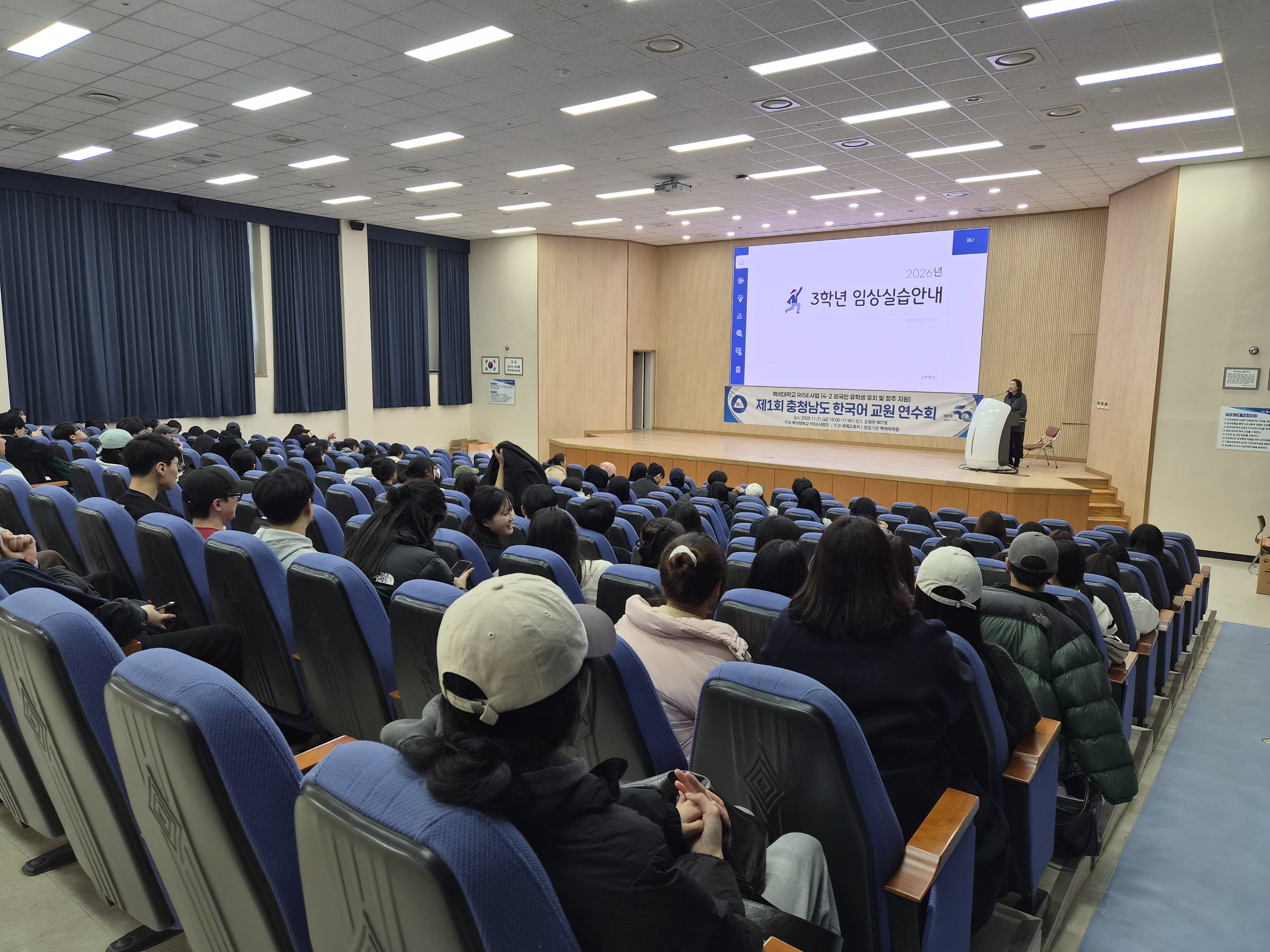 11월 20일 4-5시 조형관 807호에서 2학년 학생들을 대상으로 2026년도 교육과정과 임상실습 준비사항에 대한 설명회가 있었습니다. 내년도 수강 신청과 임상실습을 위한 예방접종 준비 등에 적극 협조하여 주시기 바랍니다~