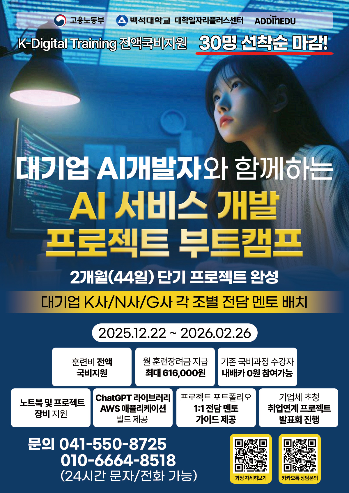 K-Digital Training 전액 국비지원 / 30명 선착순 모집!