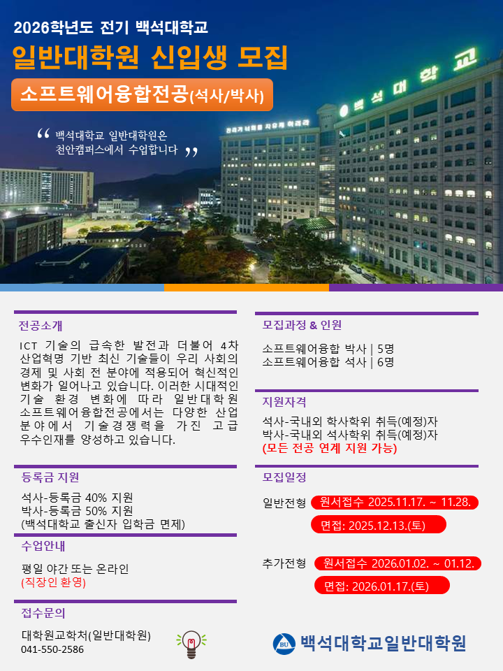 [일반대학원] 2026학년도 전기 소프트웨어융합전공(석,박사) 모집안내