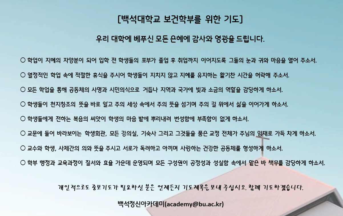 우리대학과 학부를 위한 기도입니다. 함께 기도해 주세요.