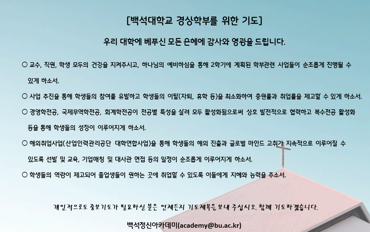 우리대학과 학부를 위한 기도입니다. 함께 기도해 주세요.