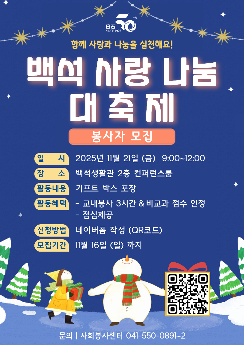 ▶ 2025학년도 백석 사랑 나눔 대축제 자원봉사자 모집 ◀