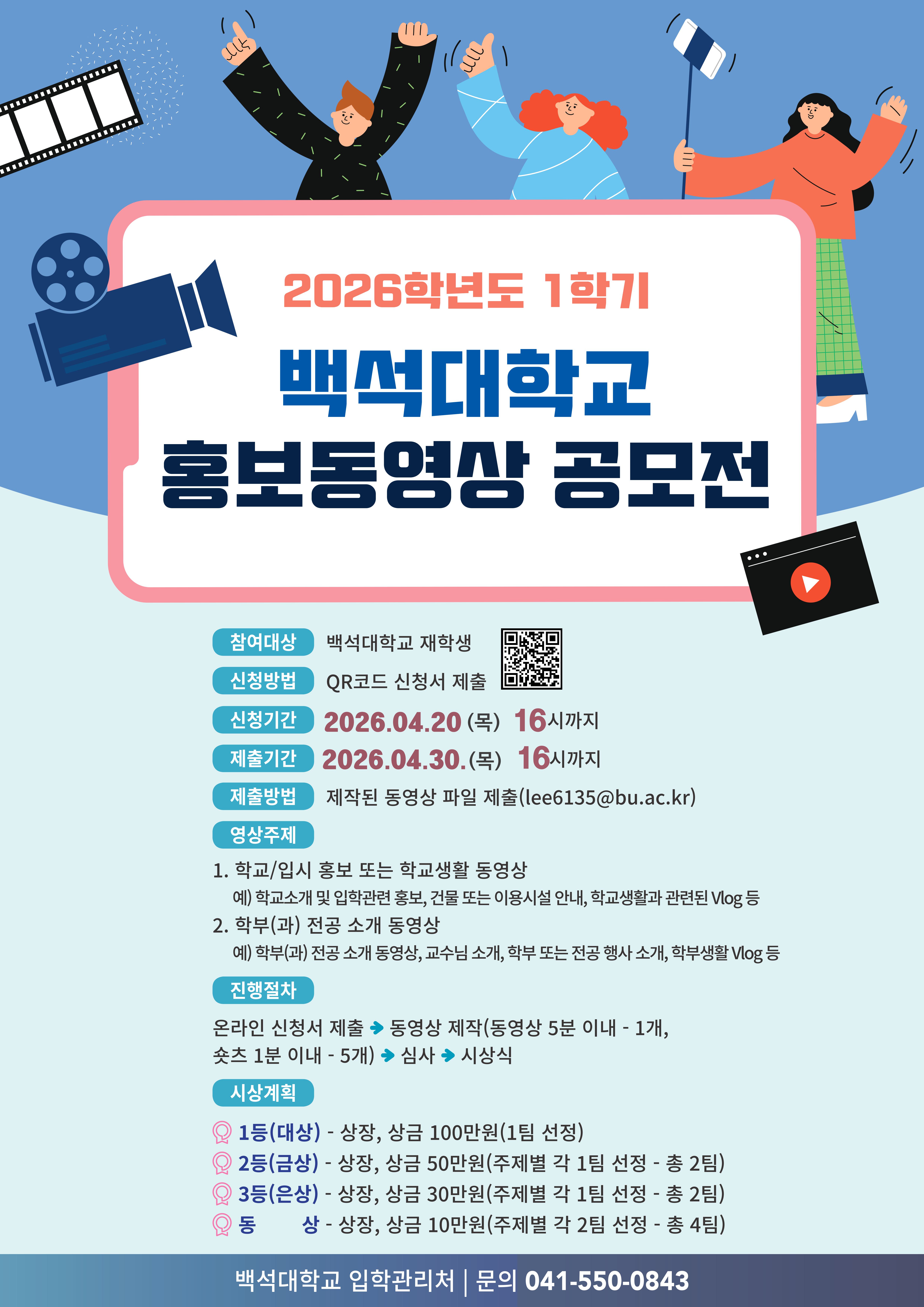 [입학관리처] 2026학년도 1학기 백석대학교 홍보 동영상 공모전 추가 모집