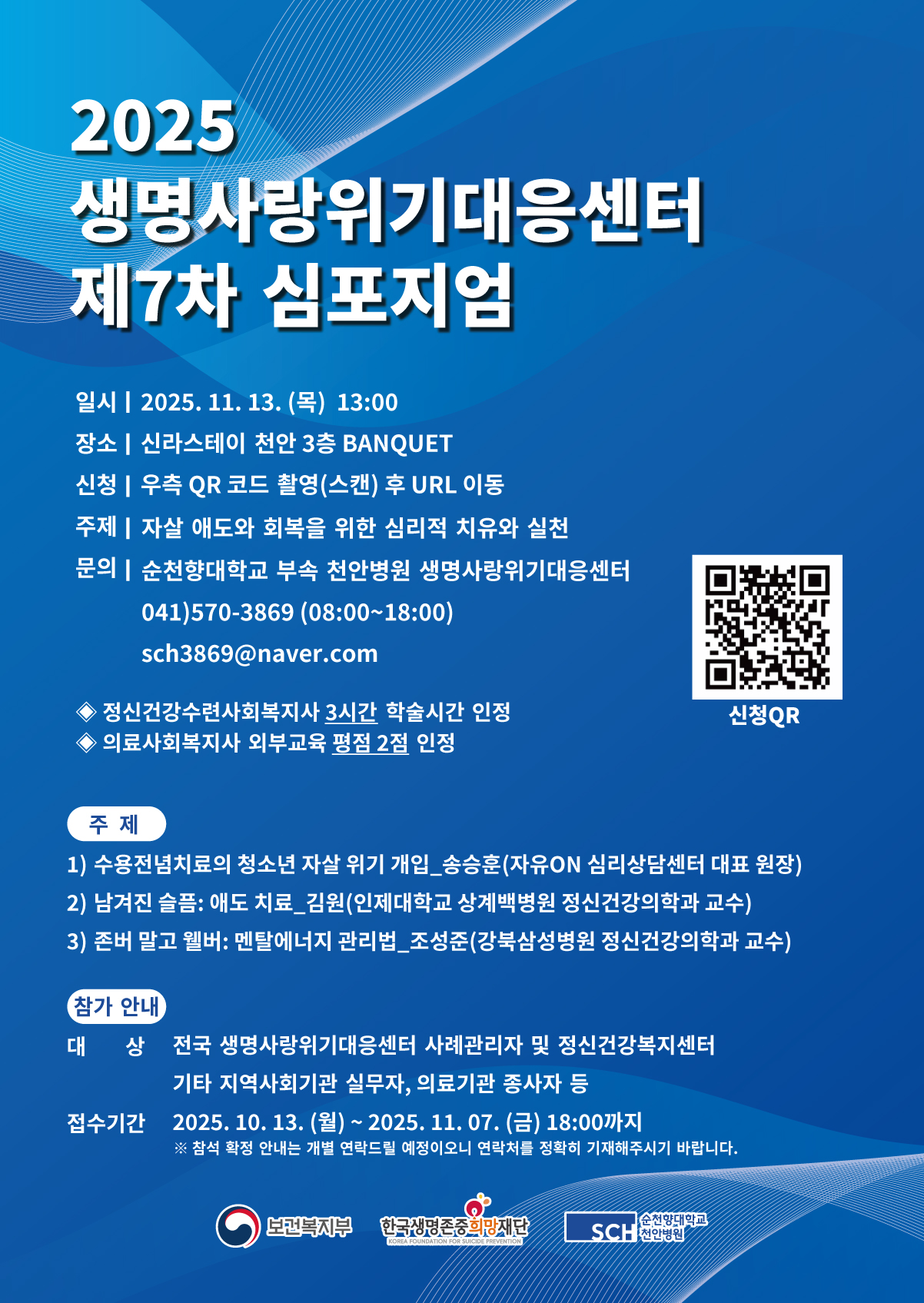 [순천향대학교 부속 천안병원 생명사랑위기대응센터] 2025년 생명사랑위기대응센터 제7차 심포지엄 개최 및 참석 안내