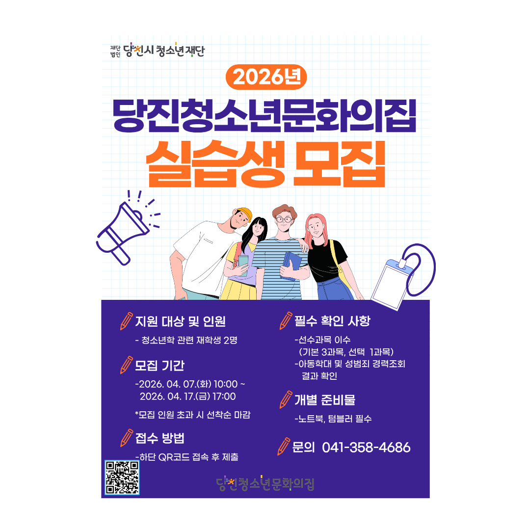 [재단법인당진시청소년재단-당진청소년문화의집] 2026년 상반기 실습생 모집