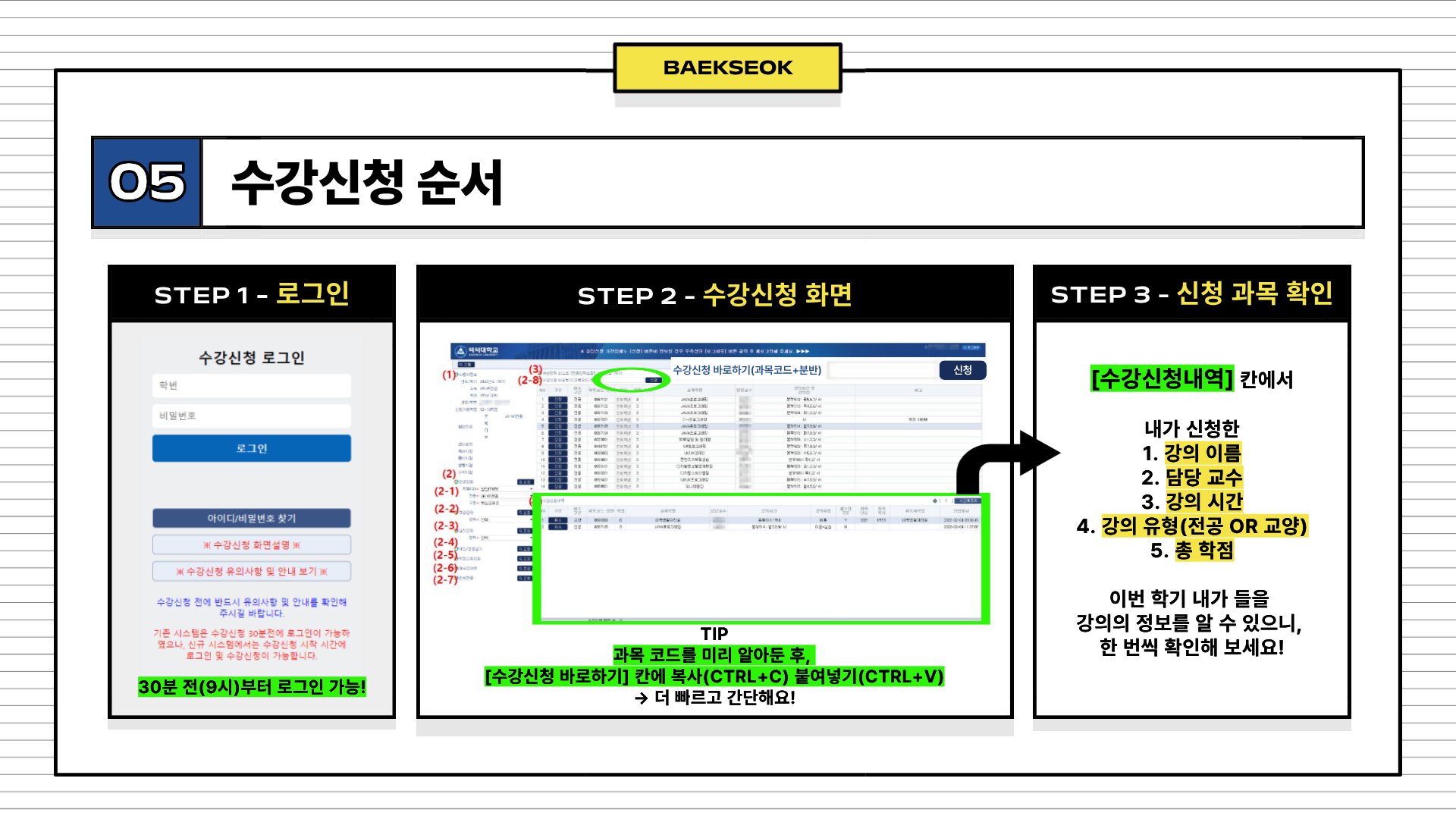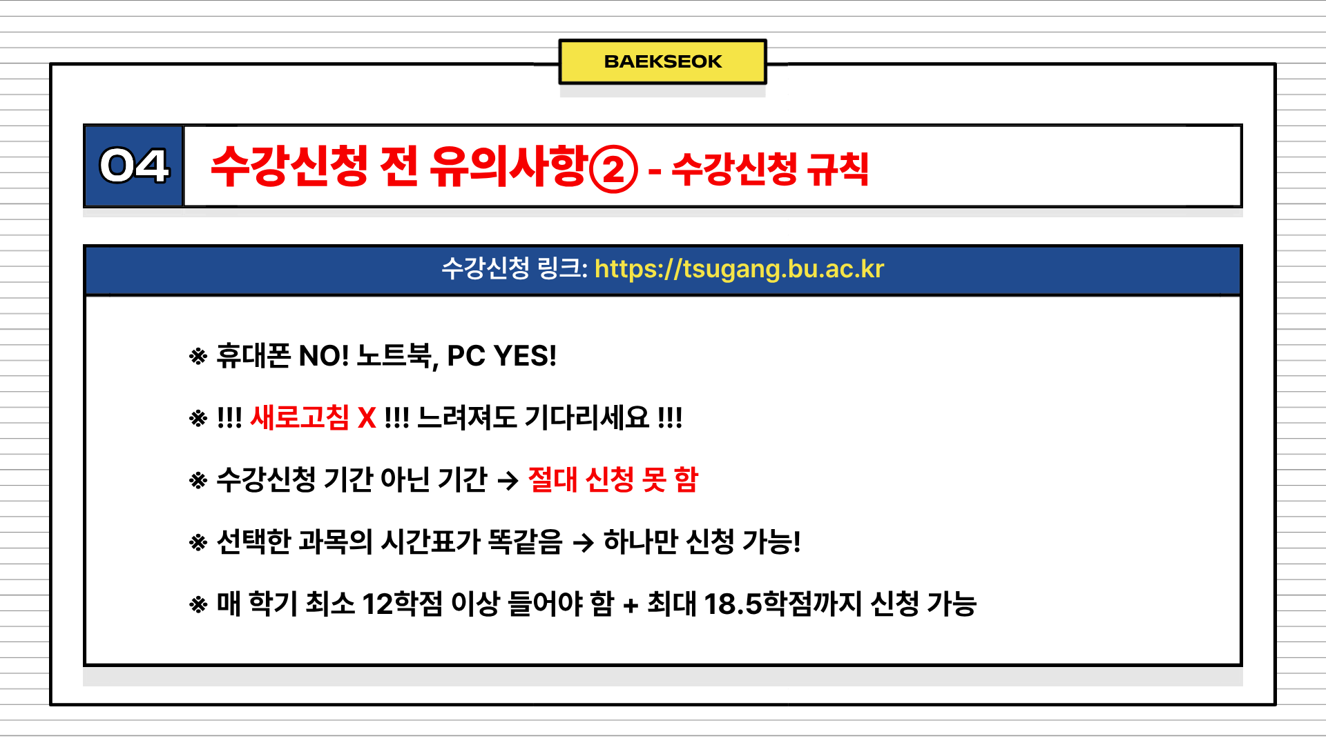 위의 자료를 숙지하여 학생 여러분은 수강신청 기간에 모두 수강신청에 참여 부탁드립니다.