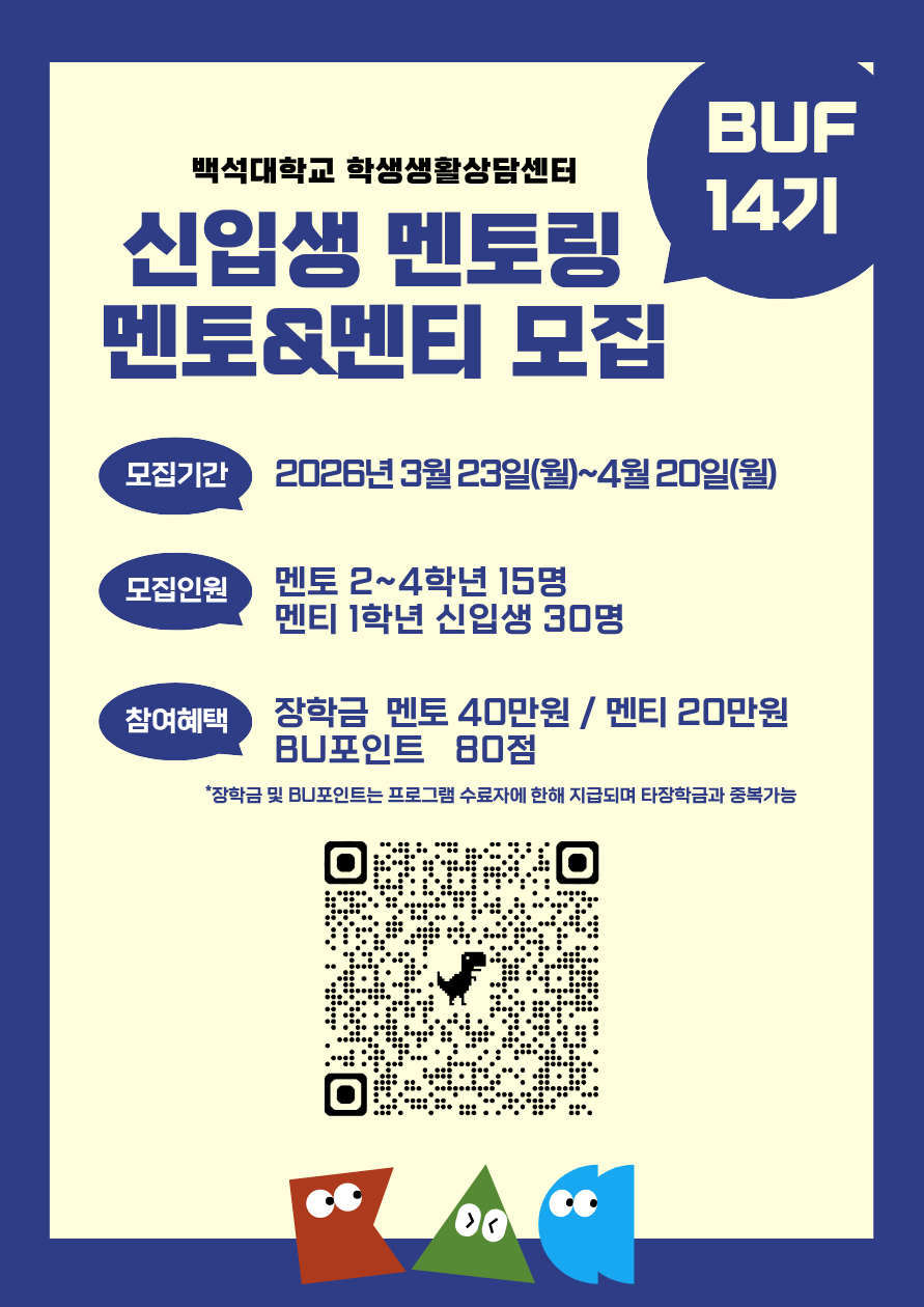 백석대학교 학생생활상담센터 신입생 멘토링 멘토&멘티 모집