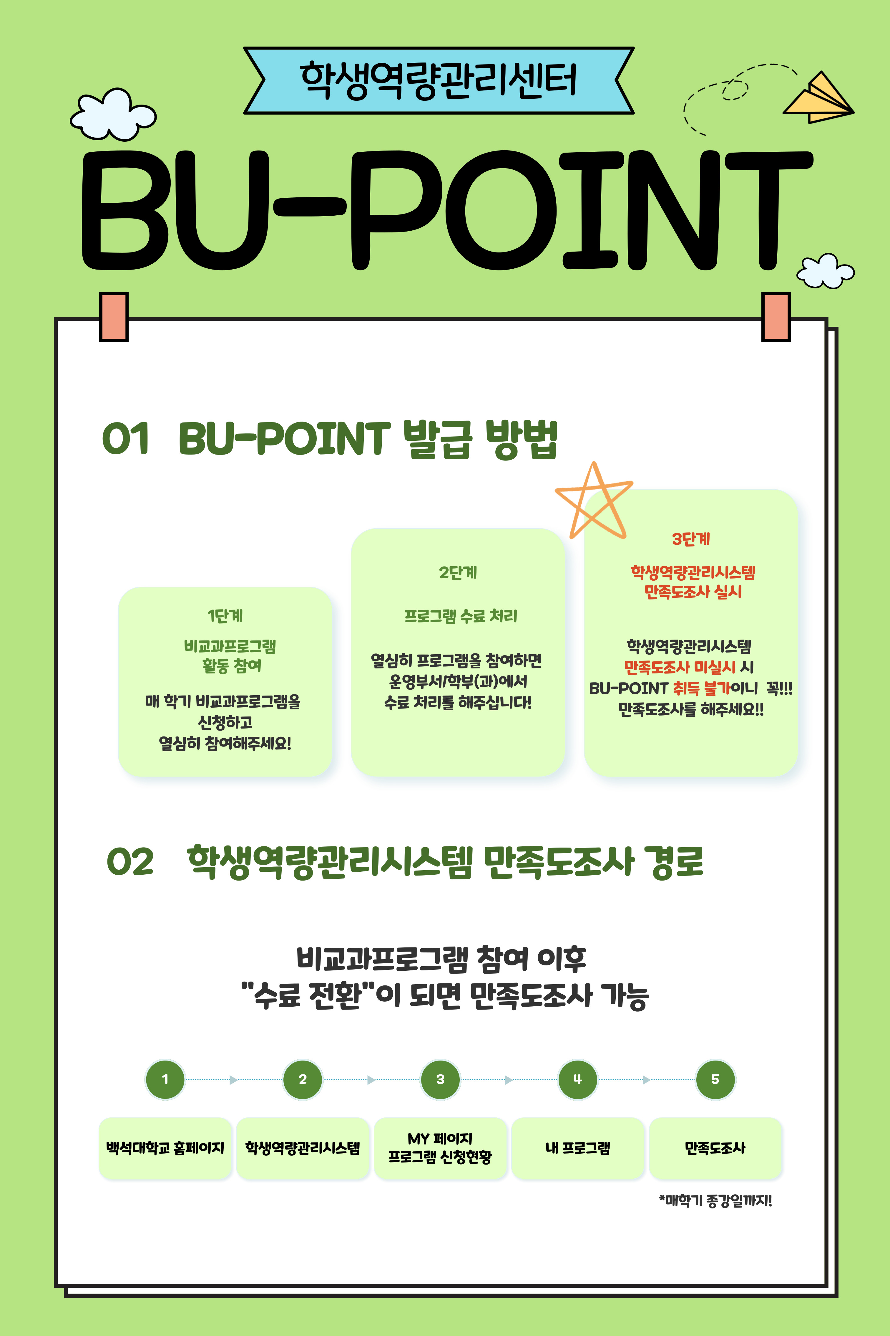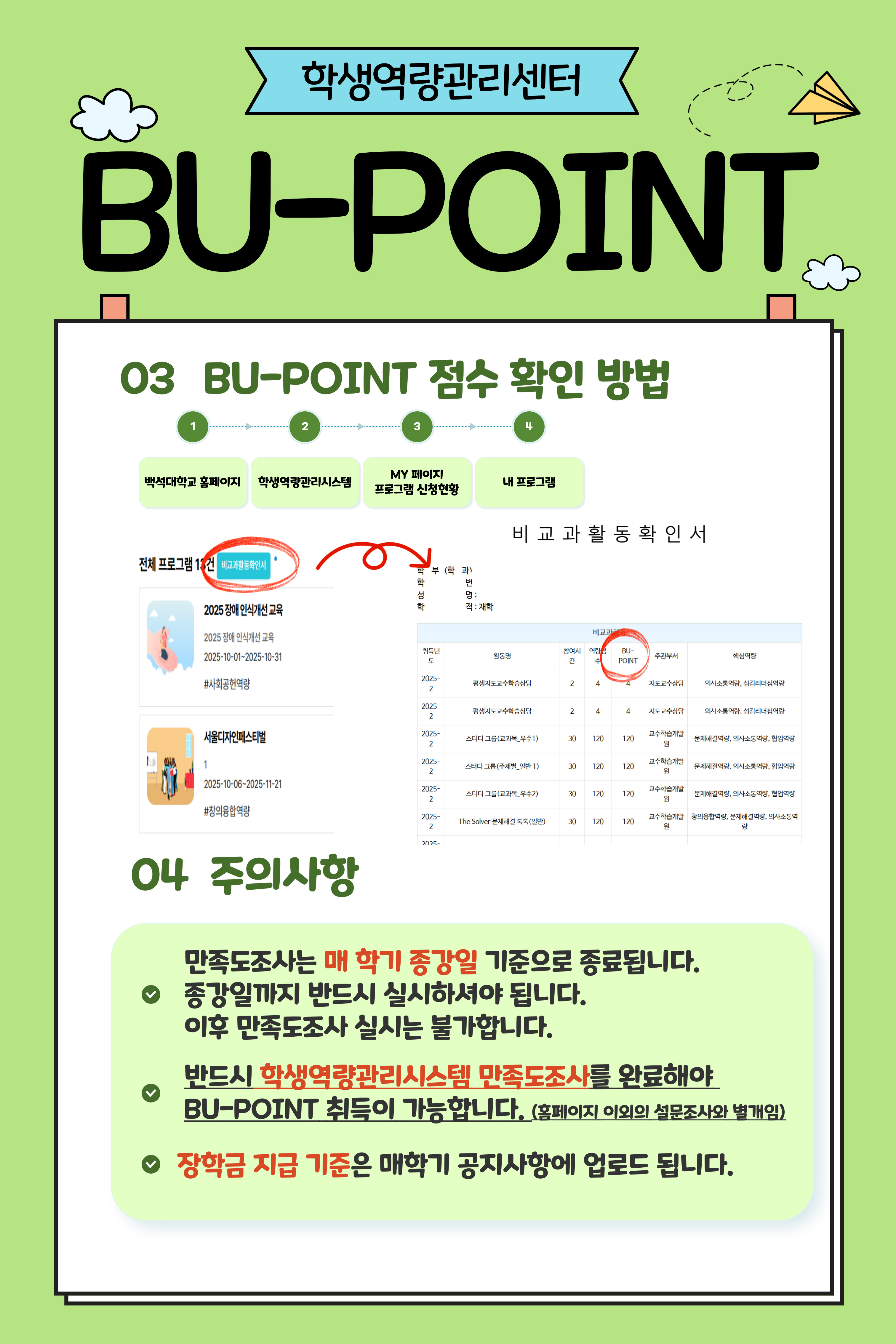 [학생역량관리센터] 비교과프로그램 BU-POINT 지급 절차 및 만족도조사 안내