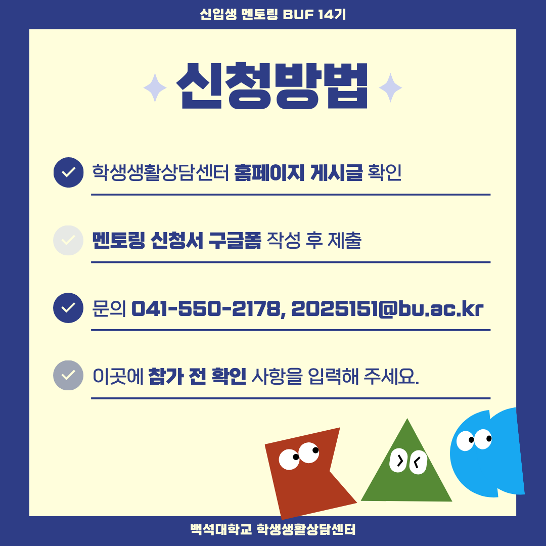[학생생활상담센터]★2026-1학기 신입생 멘토링(BUF) 14기 모집★